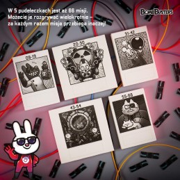 Każda misja wprowadza nowe twisty: dodatkowe komponenty, reguły, sprzęt (detektory, narzędzia wspomagające), zmienne scenariusze, a czasem nawet drobne zmiany trwałe (naklejki, modyfikacje w instrukcji). Dzięki temu każda z 66 misji to inne doświadczenie.