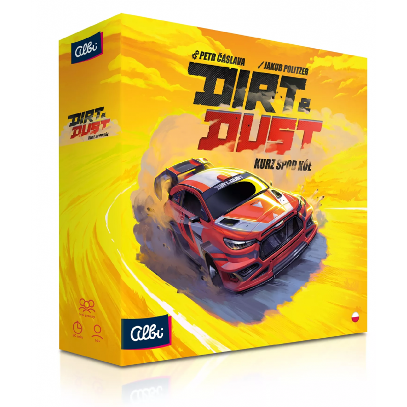 Dirt & Dust. Kurz spod kół to karciana gra o tematyce rajdów samochodowych, w której gracze, kupując nowe karty, tworzą wymarzone zespoły rajdowe i dopracowują swoje samochody do perfekcji. Rozgrywka toczy się w rundach, a każda z nich składa się z czterech faz wykonywanych jednocześnie przez wszystkich graczy. W trakcie rozgrywki uczestnicy kupują karty, aktywują ich efekty za pomocą kości i dostosowują prędkość swoich samochodów, równoważąc przyspieszenie i hamowanie w taki sposób, aby zmaksymalizować korzyści płynące z kart. Strategicznie dobierają tor jazdy, zdobywając punkty za prędkość i popularność wśród fanów. Ponadto tworzą mapy etapów, aby zdobywać punkty Prędkości; naprawiają uszkodzenia i podejmują ryzykowne manewry, by zachwycić widzów i zdobyć przewagę nad rywalami.