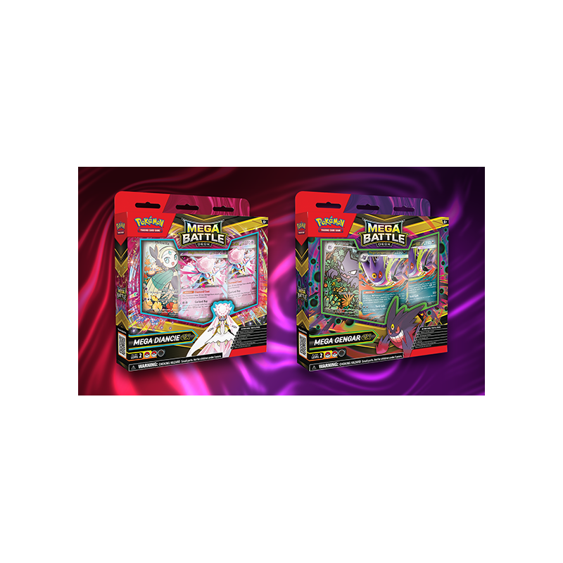 Połącz siły z Mega Gengarem ex i atakuj z ukrycia albo postaw na błysk i elegancję Mega Diancie ex, żeby olśnić przeciwników swoim sprytem.