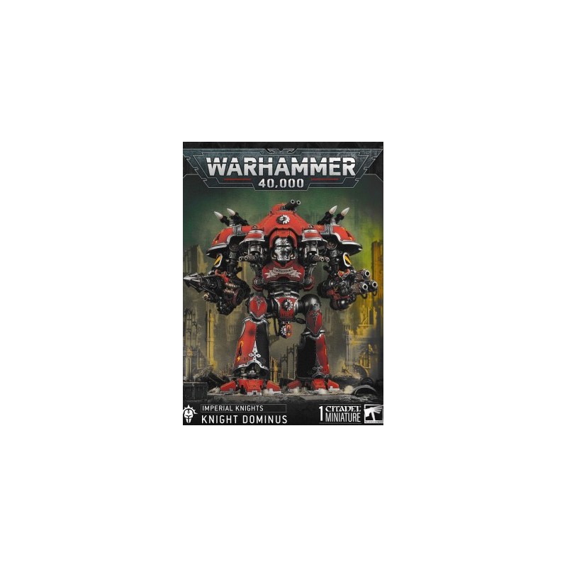 Ten zestaw zawiera 172 plastikowe elementy i jest dostarczany z owalną podstawą Citadel 170 mm. W zestawie znajduje się również arkusz transferowy Dominus, zawierający heraldykę dla rycerzy cesarskich. Ta miniatura jest niemalowana i wymaga złożenia – zalecamy użycie kleju Citadel Plastic Glue i farb Citadel.